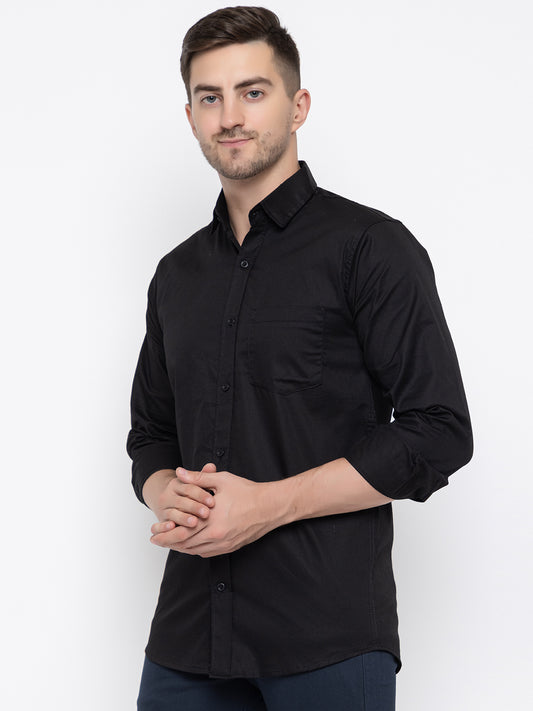 Men Regular Fit Solid Spread Collar Casual Shirt